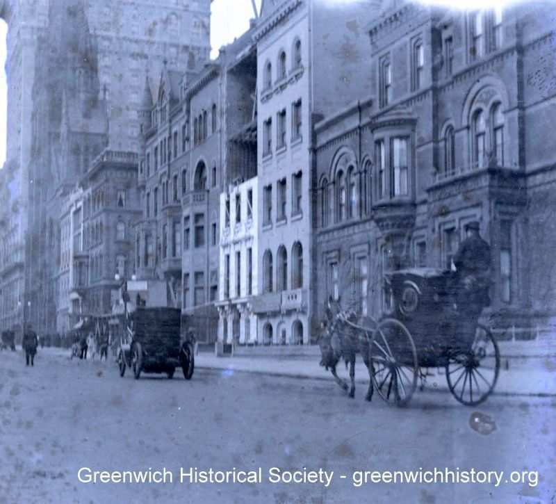 Horses, Carriages, Automobiles, Steeples, Churches, Streets, BuildingsDescription