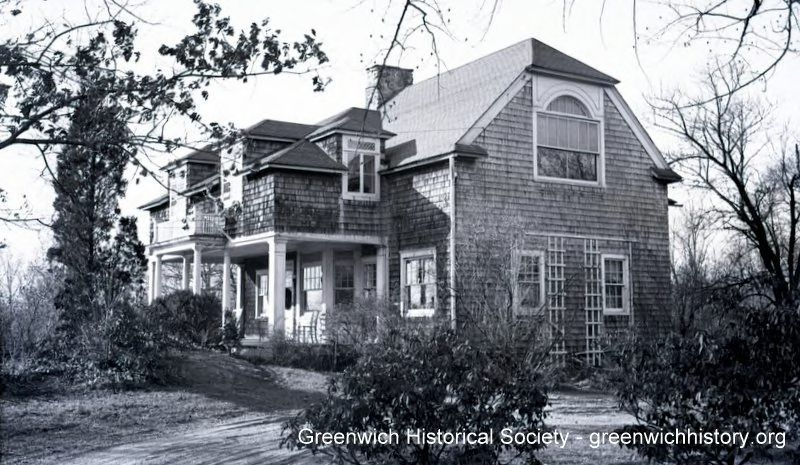 Home and Studio of artist Leonard Ochtman, 40 Valley Road, Cos Cob. The shingle style home has an arched window in the large, side gable and several dormers in the roof.Collection