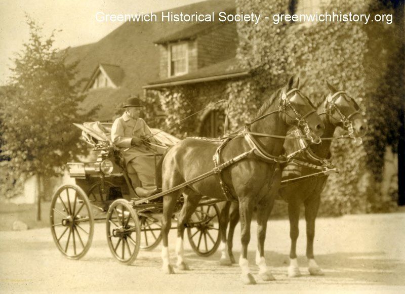 Likely Joseph Wilshire in a carriage with two horses in front of Wilshire Farm main house.Collection