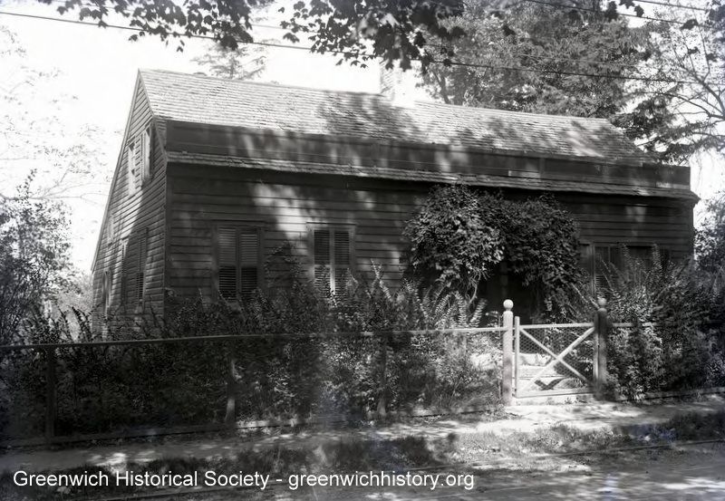 Enos Knapp House (a/k/a/ Munson House) on the site of today's Perrot Library, corner of Sound Beach Avenue and Laddin Rock Road, Old Greenwich. The porch accorss the front of the house shown in a photo circa 1890 has been removed.Collection