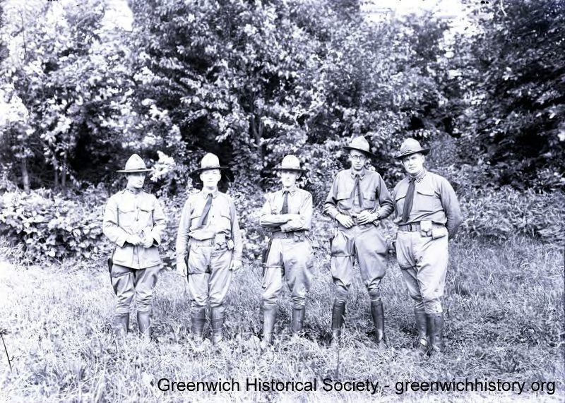 World War I soldiers posing in uniforms. Fourth from left is possibly Chester CrosbyCollection