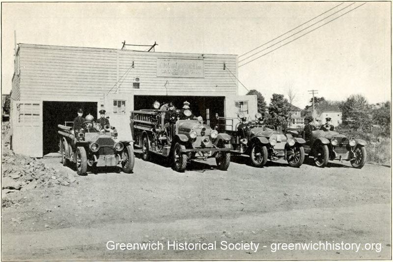 Cos Cob Fire Department firehouse with four trucks and driversCollection