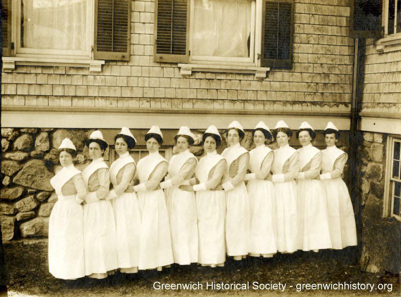 Nurses in uniform on grounds of Greenwich Hospital on Milbank AvenueCollection