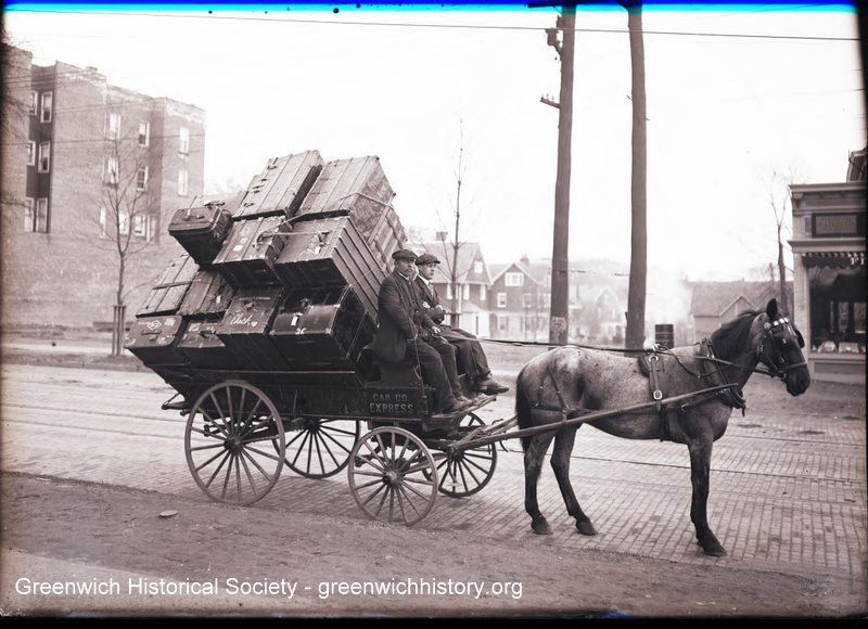 Horses, Wagons, Carts, Delivery Boys, Cobblestone Streets, People, Men, LuggageDescription