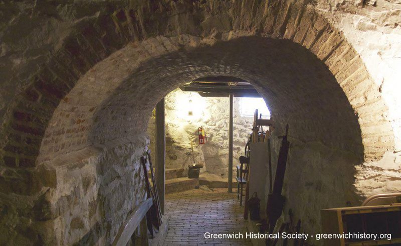 Basement brick archway at the bottom of the staircase below the dining room (room 107) of the Bush-Holley HouseCollection