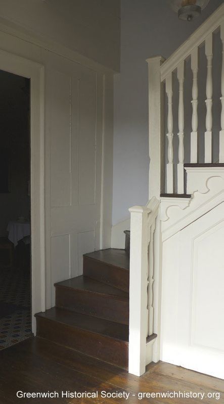 Detail of lower part of the corner staircase and hall (room 104) in the Bush-Holley HouseCollection
