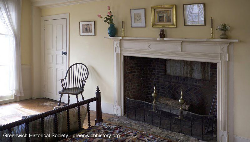 View of fireplace and mantel in the Best Bedroom of the Bush-Holley HouseCollection