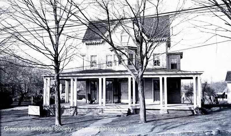 Two story home on the west side of River Road with a wrap around porch around the first story, a bay window in front on the second story, a steep pitch center gable in the front roof, and decorative mill work along the bottom of the roofCollection