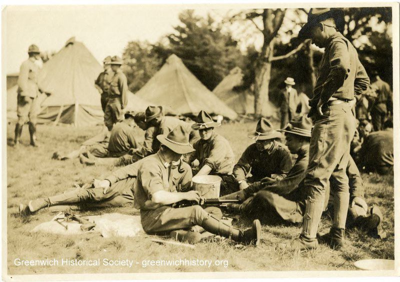 Soldiers seated and standing at rest near tents at Plattsburg Training CampCollection