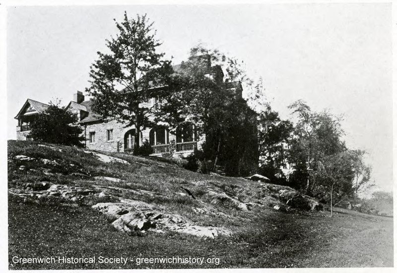 Greyledge, home of Raynal C. Bolling. Side view of the house from below a rocky ledge.