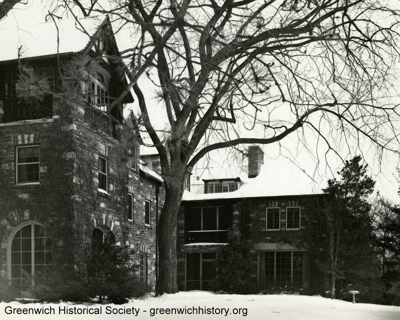 Greyledge, home of Raynal C. Bolling and family. Rear of the house with mature trees in snow. Breakfast porch is in foreground looking toward the big porch. Grandparents' bedrooms are above.Collection