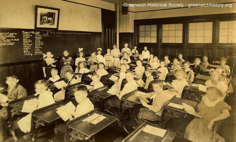 Students seated at their desks in Havemeyer School, which was built in 1893Collection
