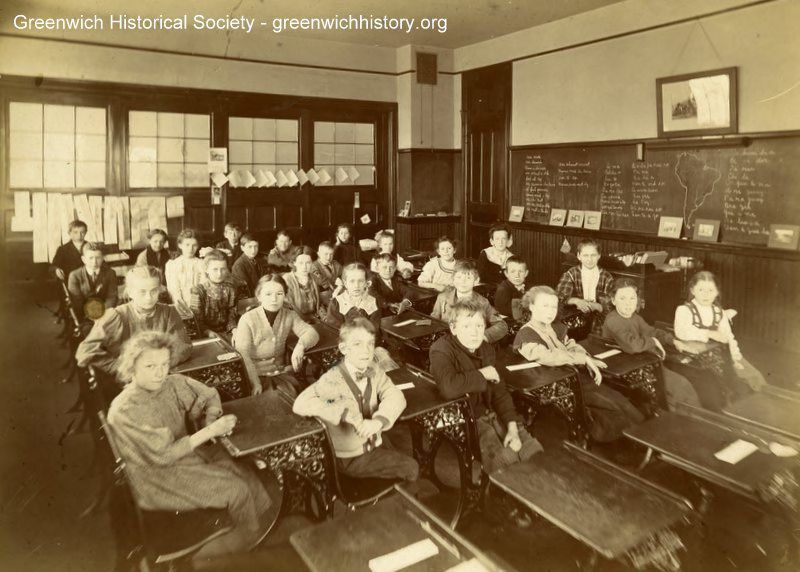 Students seated at their desks in Havemeyer School, which was built in 1893Collection