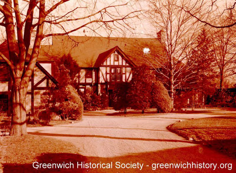 Near view of Edge Tide, circa 1938, a half-timbered home and estate at or near 9 Smith Road, Belle Haven.Collection