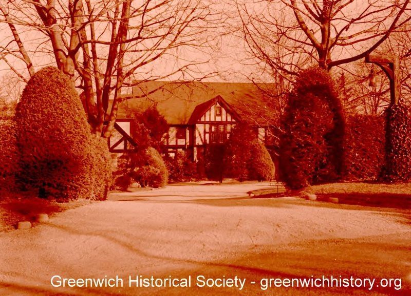 Approach to Edge Tide, circa 1938, a half-timbered home and estate at or near 9 Smith Road, Belle Haven.Collection