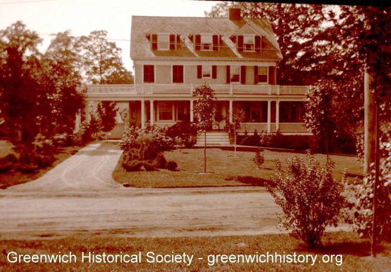 Two story, five ranked window home with wrap around porch on the first and second stories which extends to form a drive through portico on the side of the house. The garage is in back of the house.Collection