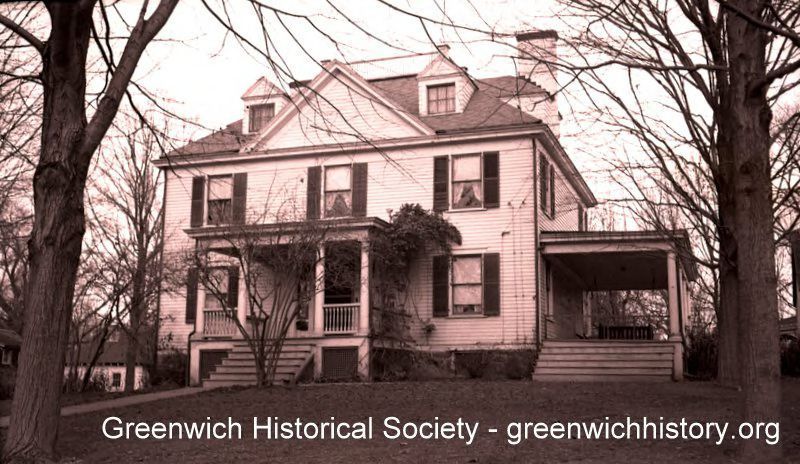 Clapboard house at 49 Brookside Drive, 1937, with raised porches in the front and on the side.Collection