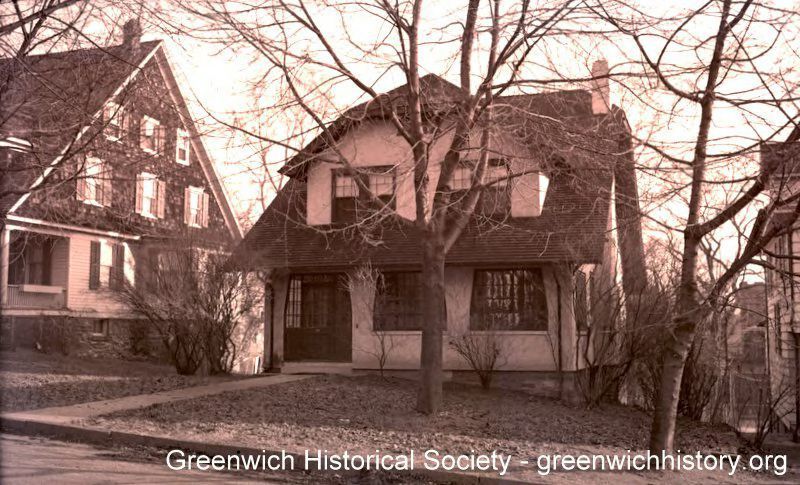 One and one half story stucco home with an enclosed front porch, a steep pitched roof and expansive, hipped dormer in front.Collection