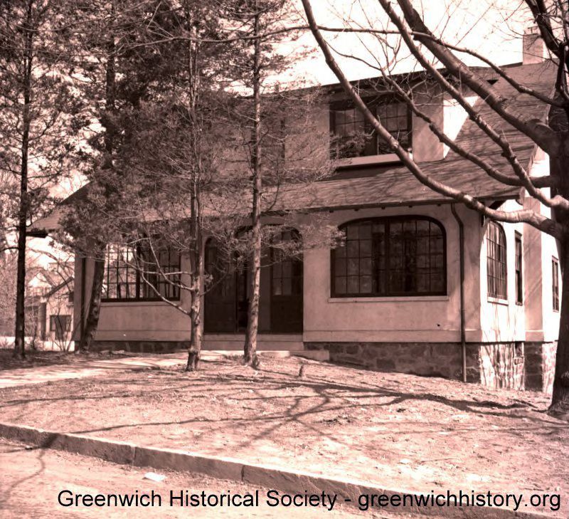 One and one half story stucco home with a partially enclosed front porch, a steep pitched roof and expansive dormer in front.Collection