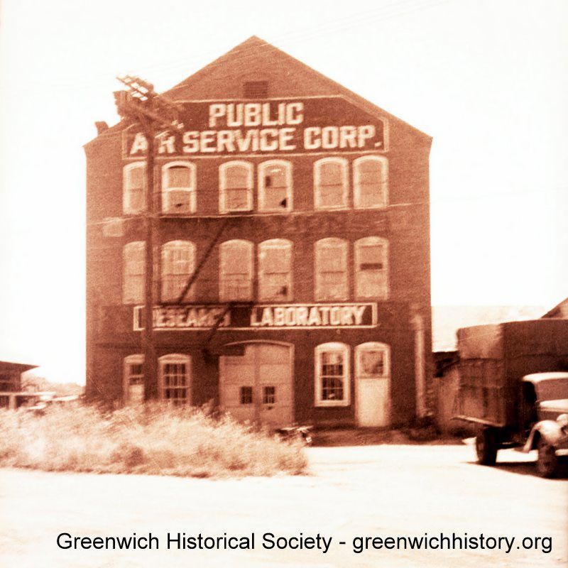 This building is currently the Arch Street Teen Center. At the time of this photo, it was owned by Banca Commerciale Italiana Trust Co. and the sign on the building read Public Air Service Corp. Research Laboratory. A truck with a canvas cover is in the lower right corner.Collection