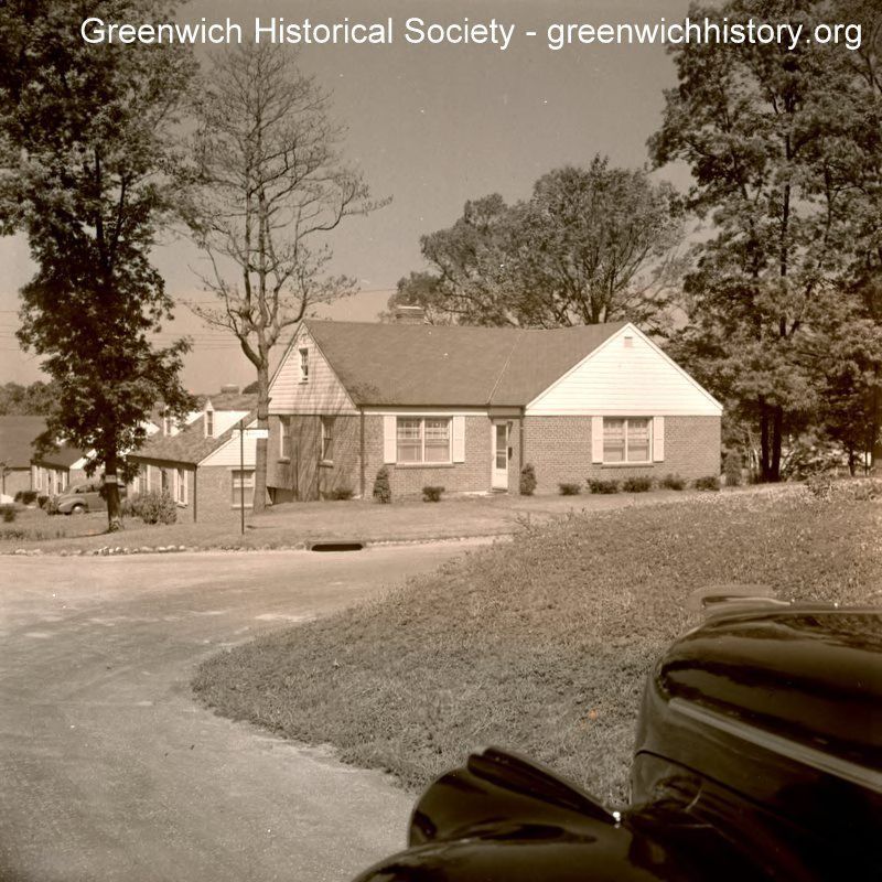 This small houe is at the northwest corner of Arnold Street and Halsey Drive and is part of the Havemeyer Park development. The front end of a car with a hood ornament is visible in the lower right corner of the picture.Collection
