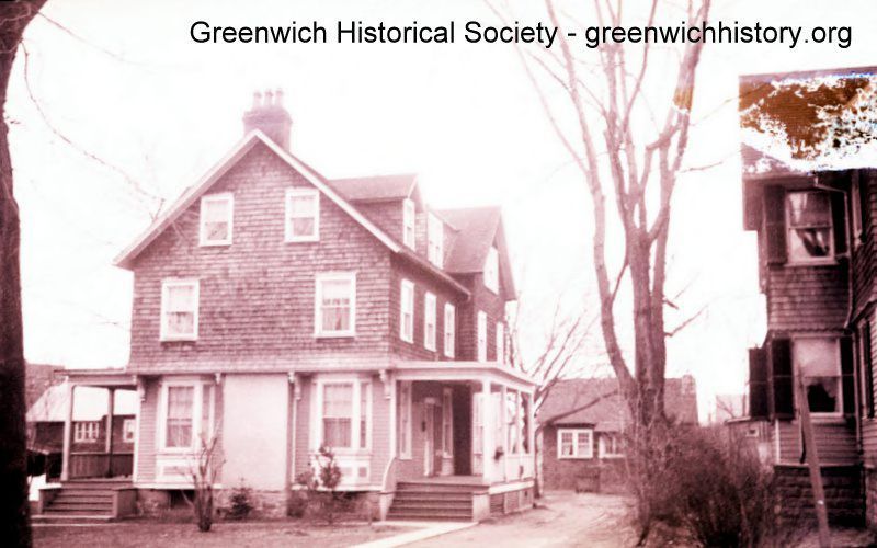 Two story clapboard home on East Elm Street, circa 1936, with multiple dormers, matching bay windows and front and back porches.Collection