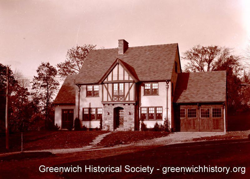 Two story home at 3 Maher Court, circa 1937. The house has a split timber center gable and projecting second story area over a recessed stone entrance and an attached garage. The owner of the house at that time was Mannheimer.Collection