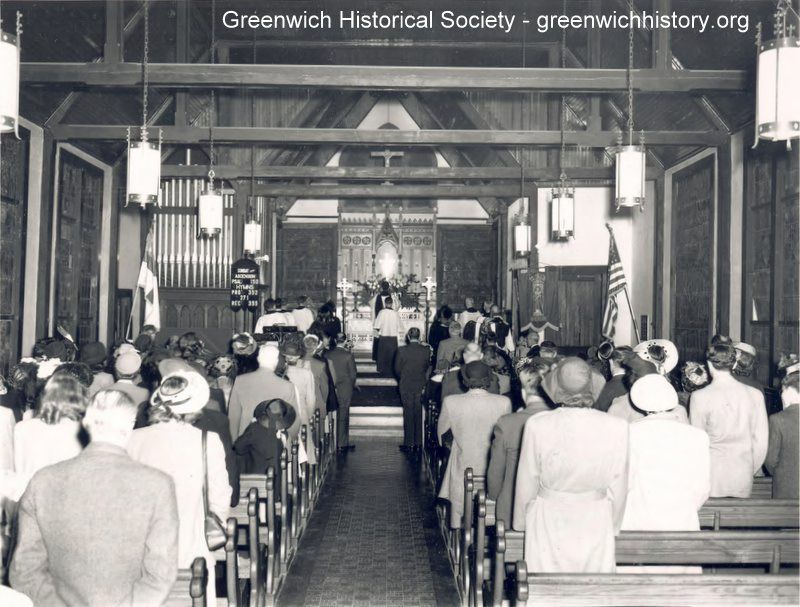 Interior of original chapel of St. Paul's Episcopal Church, Riverside, built circa 1876 on Chapel Lane.Collection