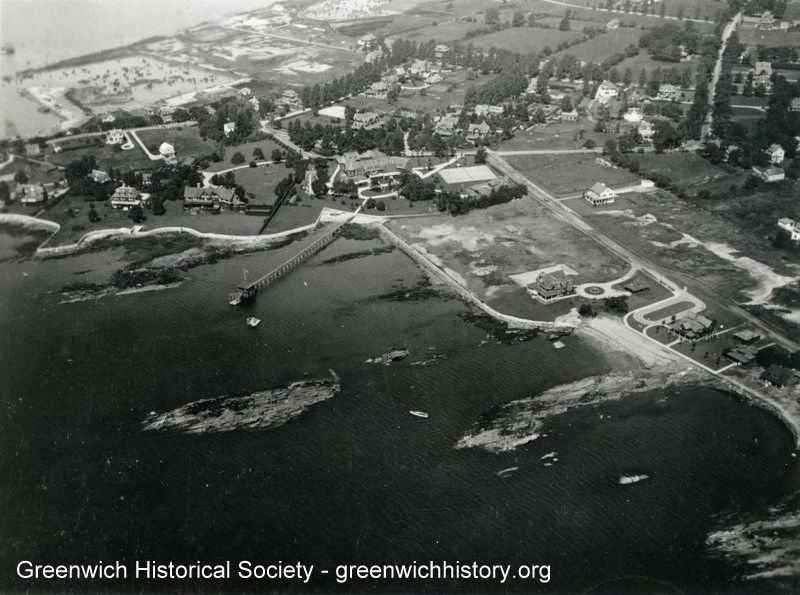 Aerial view of the Greenwich Inn and surrounding area on Rocky Point, Old Greenwich, circa 1915.Collection