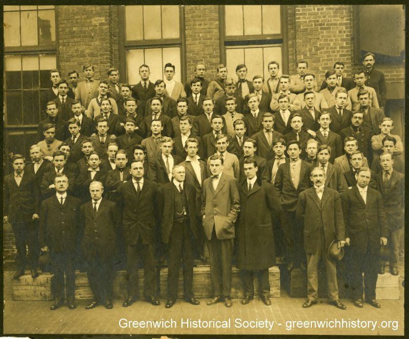 Unidentified group of approximately 60 boys and eight adults, possibly a school class.Collection