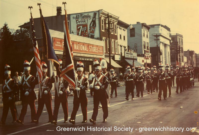 American Legion Drum Corps Post No. 29 Greenwich, Connecticut marching in parade celebrating the 100th anniversary of the Putnam Engine and Hose Company of Port Chester, NY on October 2, 1954Collection