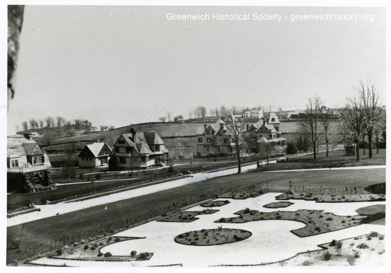 Houses on Field Point Road looking southeast. House on left with first floor stone exterior is 469 Field Point Road.Collection