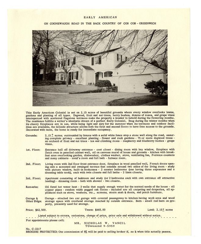 Ad with an image of the front of the house and information on the location, rooms, and price.