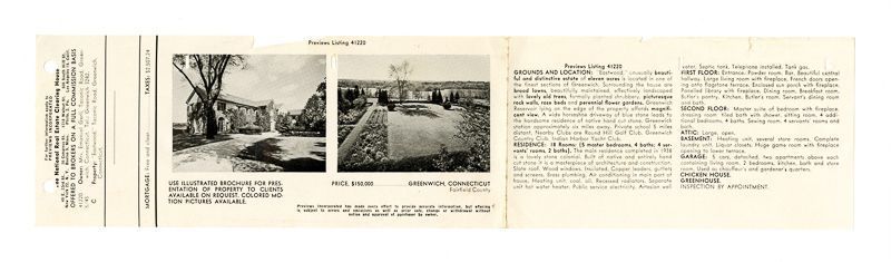Ad with an image of the house and an image of its garden. Ad also includes information on the house's grounds, location, rooms, outbuildings, and price.Collection
