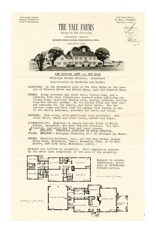 Ad with a drawing of the house and its floor plans. Ad also includes information on the house's location, rooms, and price.Collection