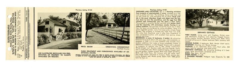 Ad with images of the house and its grounds. Ad also includes information about the house's grounds, rooms, location, and price.Collection