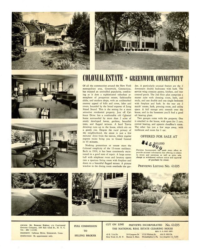 Ad with images of the house, its lawn, and interiors. Ad also includes information about the house's location, rooms, and price.Collection