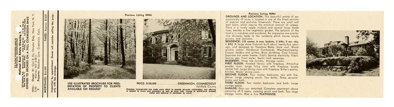 Ad with images of the house and its gardens. Ad also includes information on the house's location, grounds, rooms, and price.Collection