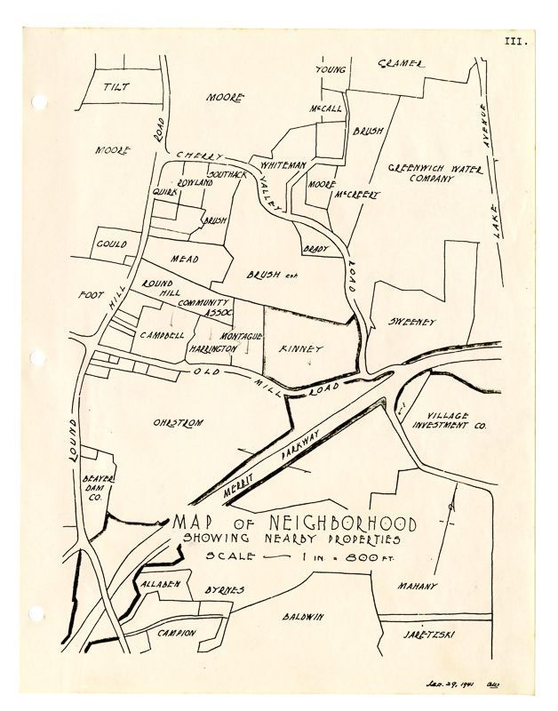 Map of the neighborhood with the plots and their owners marked out.
