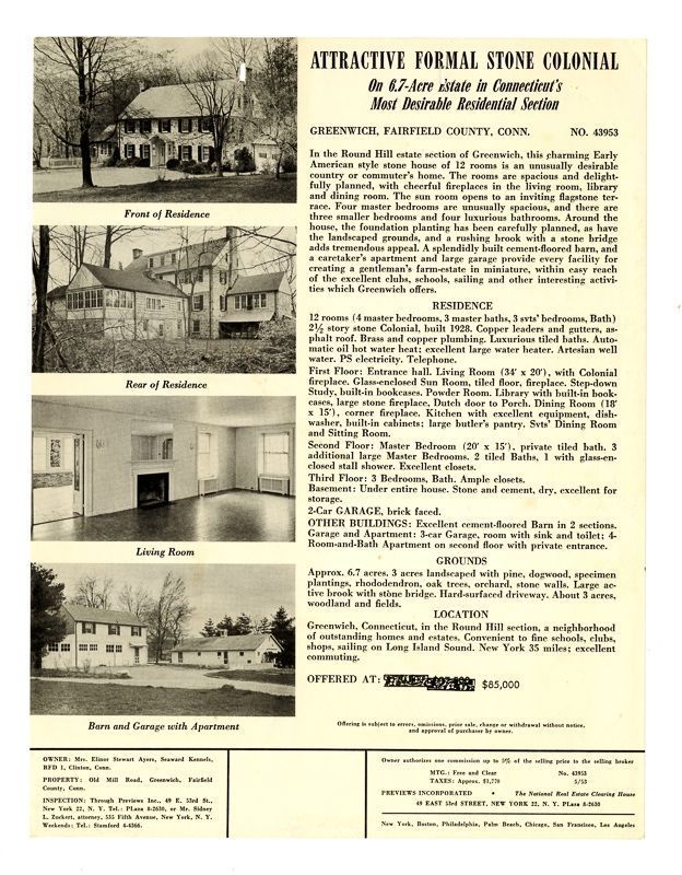 Ad with images of the house, its interiors, and outbuildings. Ad also includes information on the house's location, grounds, rooms, outbuildings, and price.Collection