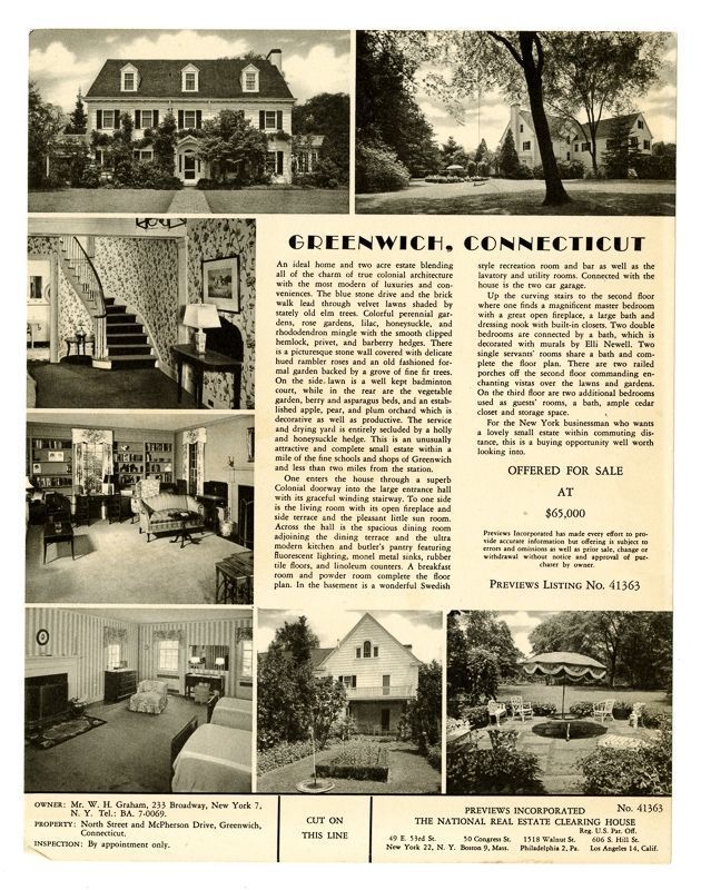 Ad with images of the house, its grounds, and interiors. Ad also has information on the house's location, grounds, rooms, and price.Collection