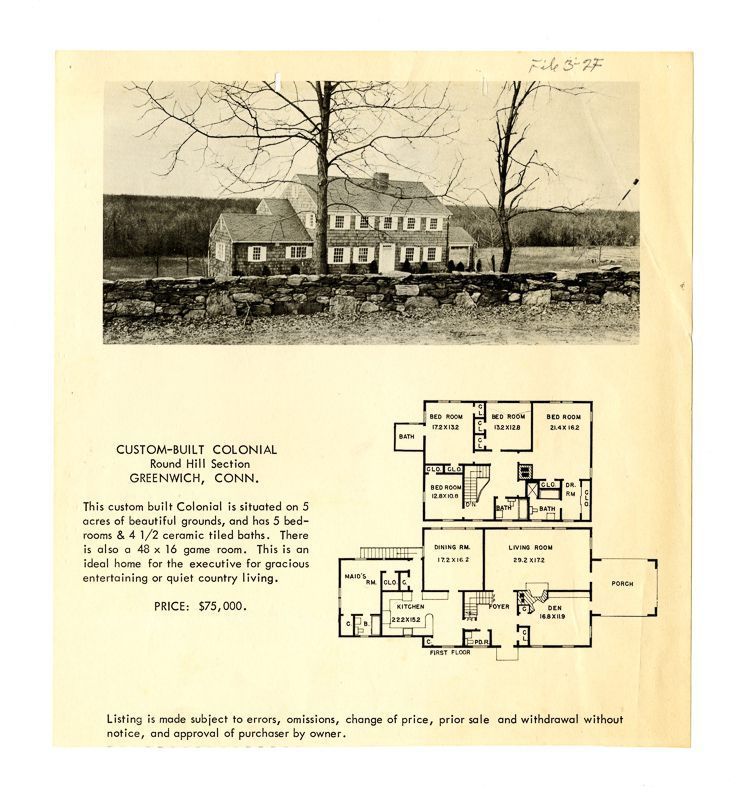 Ad with an image of the house and its floorplan. Ad includes information on the house's location, rooms, and price.Collection