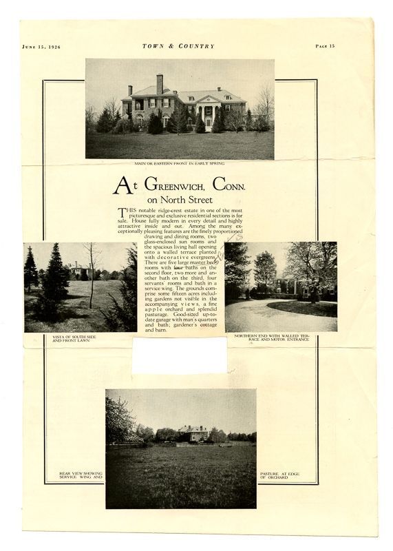 Ad with images of the house and its grounds. Ad also has information on the house's rooms, grounds, and outbuildings.Collection
