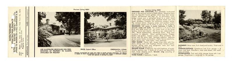 Ad with three views of the house and its garden, as well as information about the location, grounds, interiors, and price.Collection