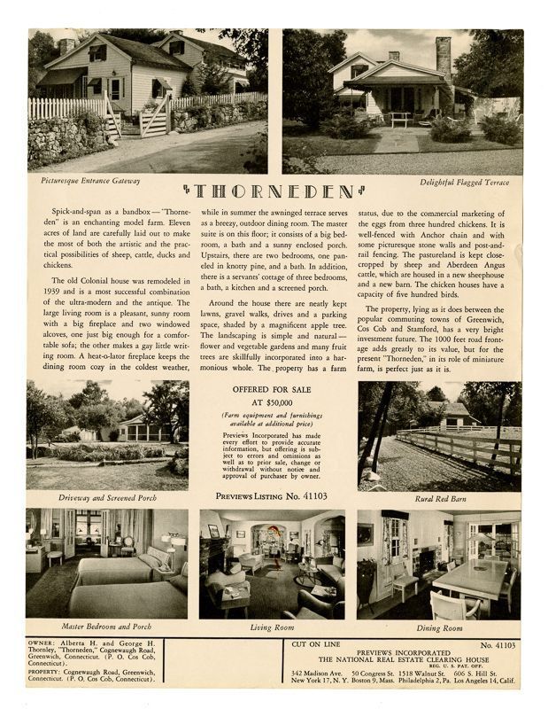 Ad with images of the house and its interiors. Ad also includes information about the house's grounds, rooms, location, and price.Collection