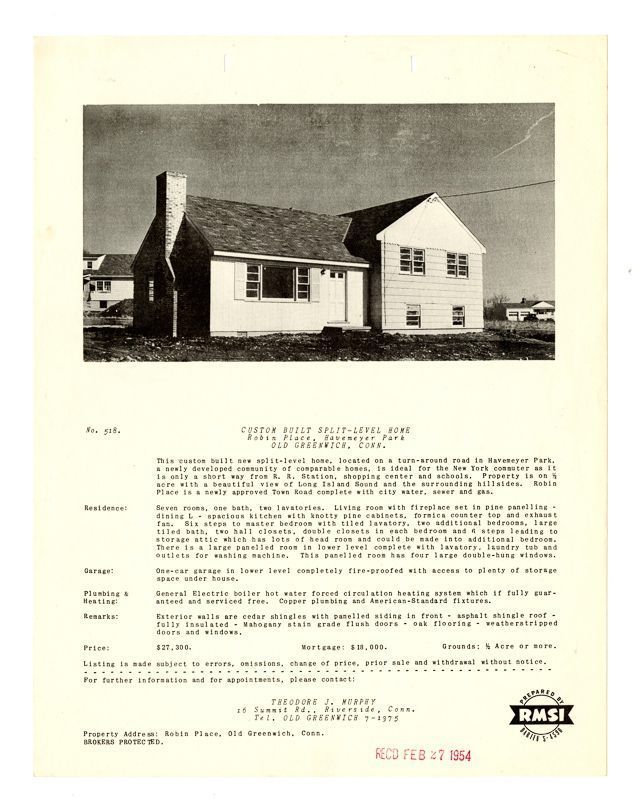 Ad with an image of the house and information on its location, grounds, rooms, and price.