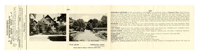 Ad with an image of the house and an image of its garden. Ad also includes information on the house's location, grounds, rooms, and price.Collection