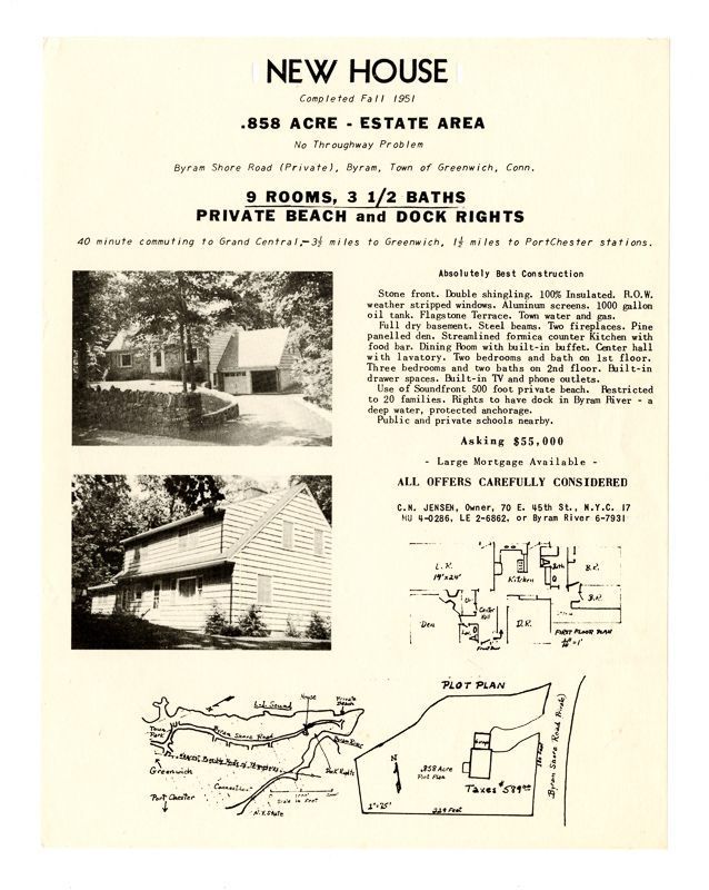 Ad with images of the exterior of the house, floorplans, and a map of the area. Ad also has descriptions of the house and local area.Collection
