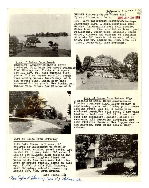 Ad with views of the house from several angles and a view of Long Island Sound from the house's porch. Ad also describes the exterior and interior of the house.Collection