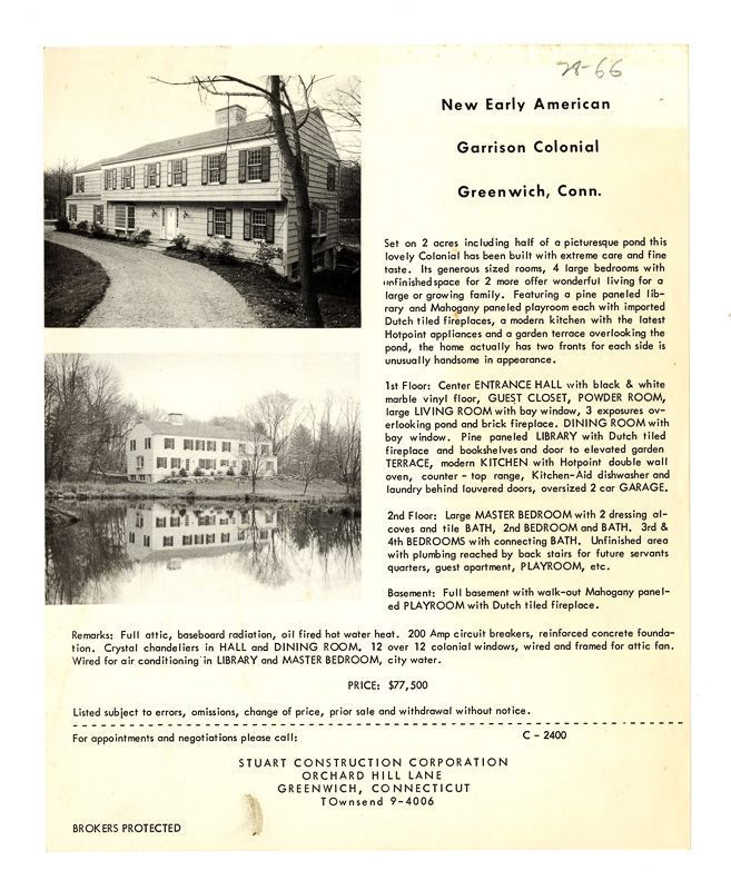 Ad with two images of the house and information on its location, grounds, rooms, and price.